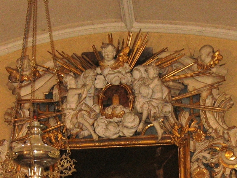 lewej stronie ołtarza głównego, na przyściennej konsoli,