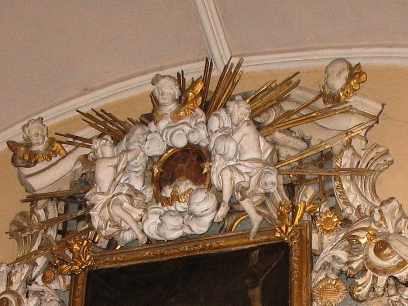 manierze barokowej. Kontrapost, palma, krucyfiks, aureola (nad: M.H.) (uwaga: dawniej powiat Grodków, dziś woj. opolskie) |