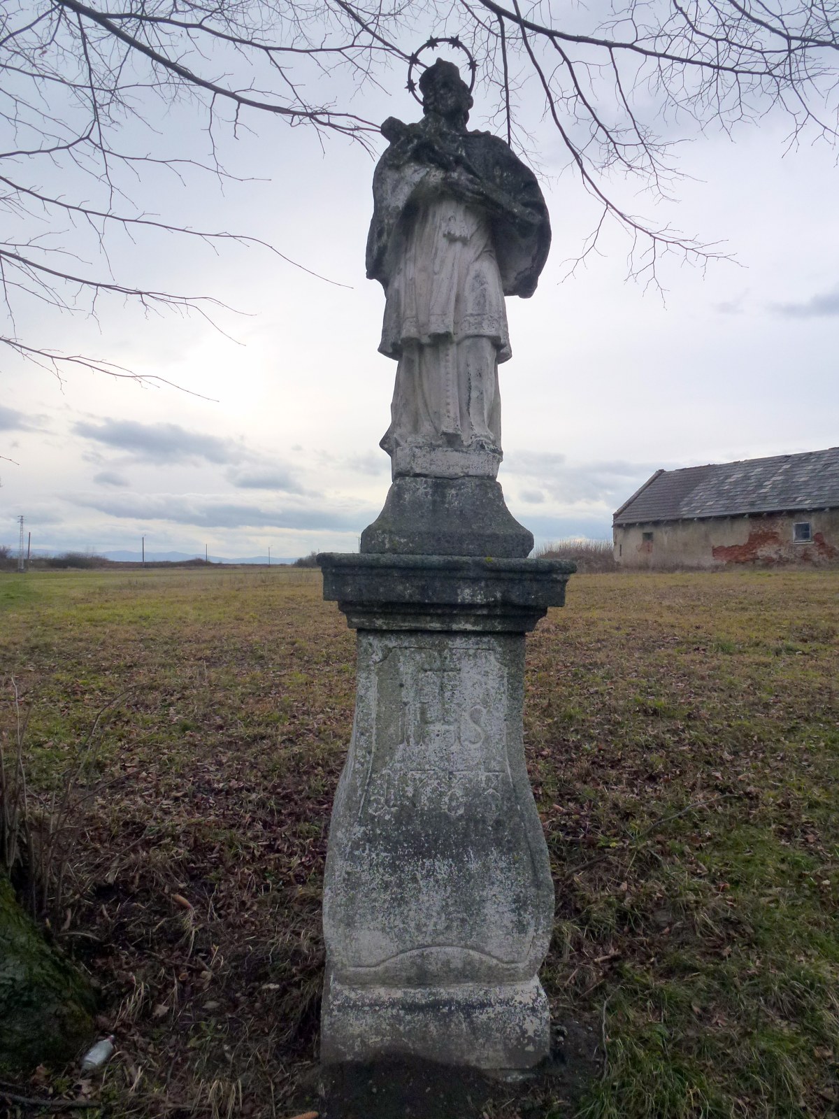 stoi kamienna figura Jana N., remontowana około 2011 roku. Polichromia z