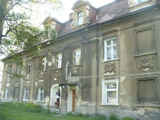teren dworski stoi murowana kapliczka z niszą, a w niej była niegdyś