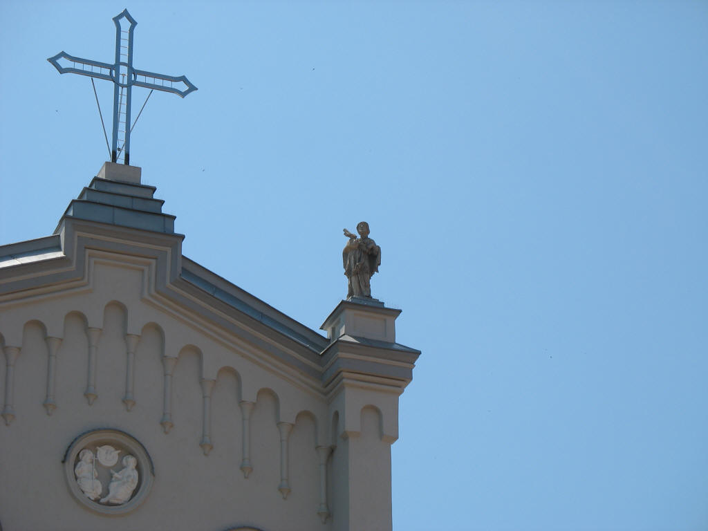 usta Świętego otwarte, wzrok skierowany przed siebie. Rzeźba ustawiona