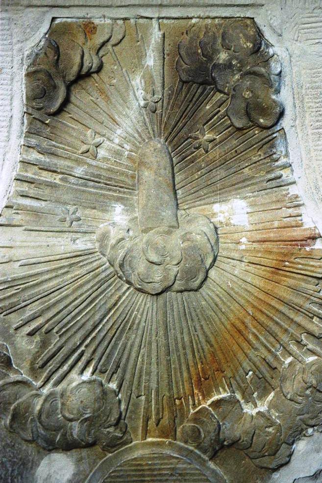 N. Postać Jana w aureoli, z krzyżem i palmą, otoczona jest ornamentami