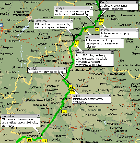 w kościele, figura w kościele, kamienny Jan przy mostku). Potem